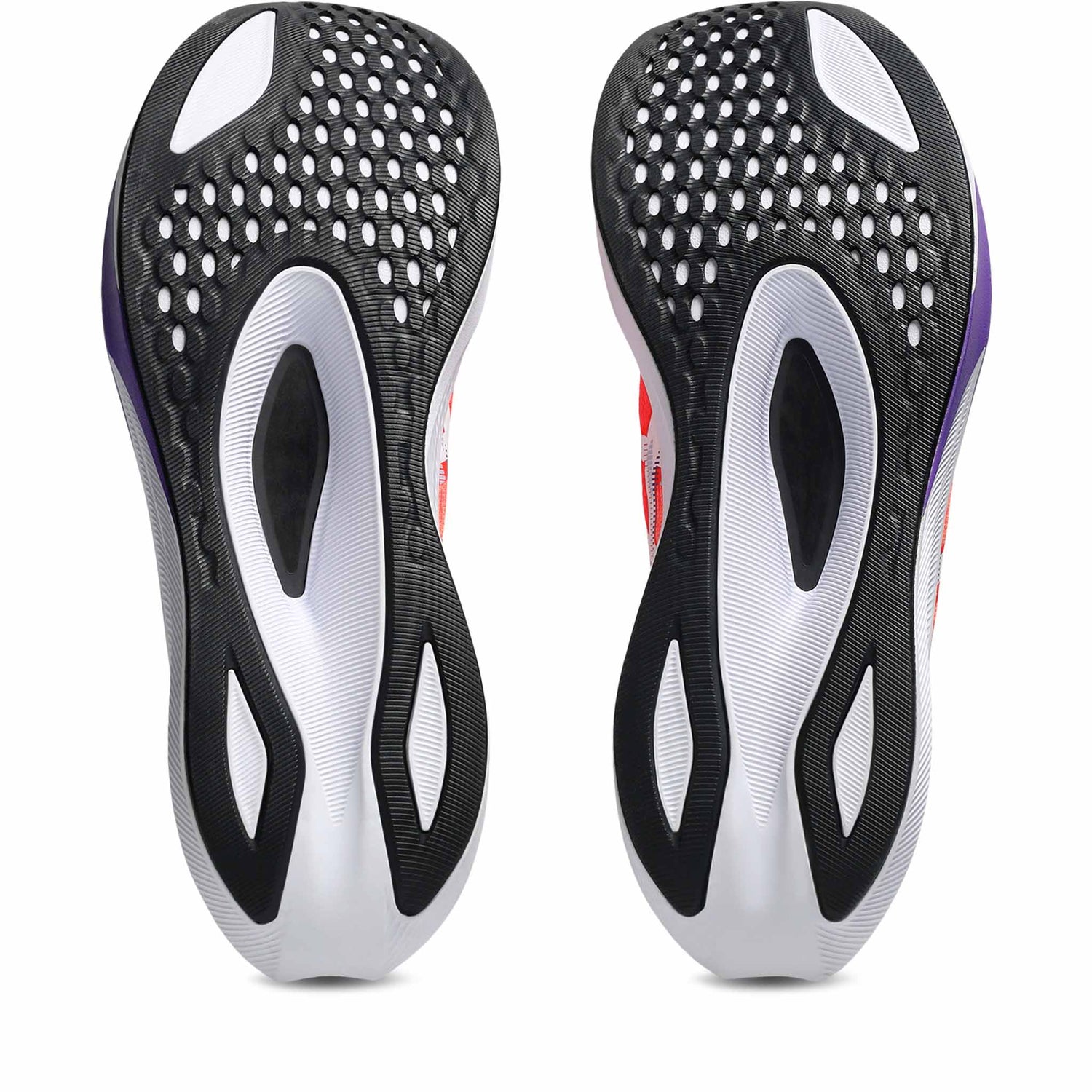 The Asics Magic Speed 4 running shoes for men are designed to enhance breathability with their engineered mesh upper. At least 50% of the main upper material is made with recycled materials to reduce waste and carbon emissions. The sockliner is produced using a solution dyeing process that reduces water usage by approximately 33% and carbon emissions by approximately 45% compared to conventional dyeing technology.