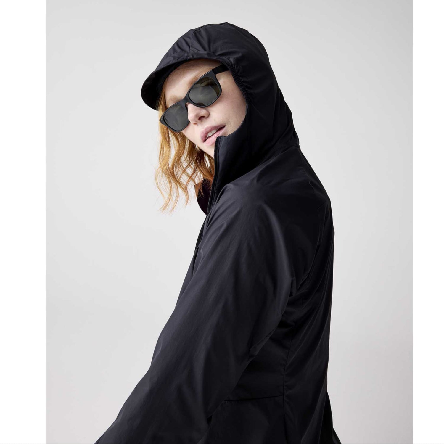 Elastic cuffs and hood for wind protection.