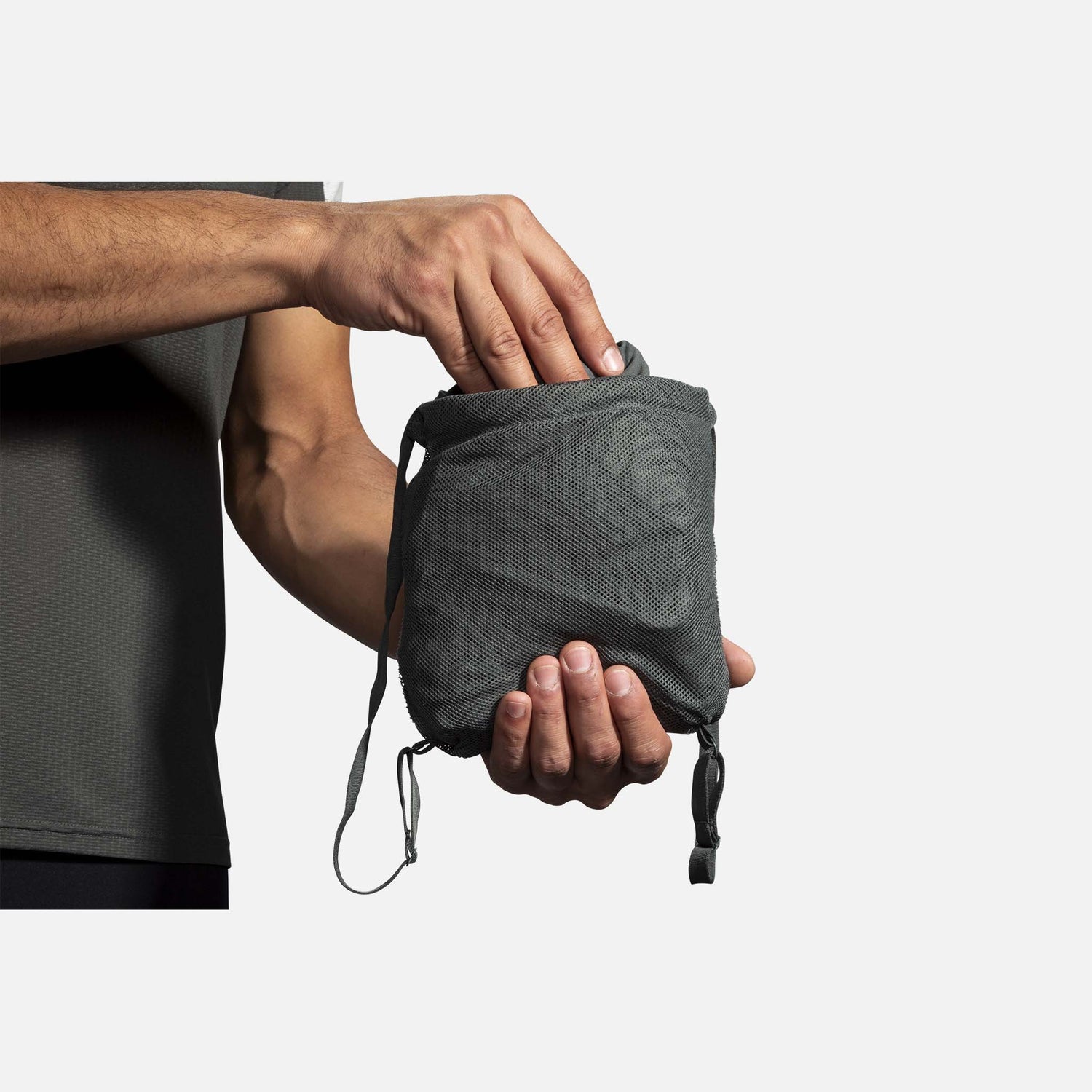 There's never a bad weather day with this men's hybrid running jacket. Wind- and water-resistant panels provide protection, and you can pack it into a built-in mesh backpack if the skies clear.