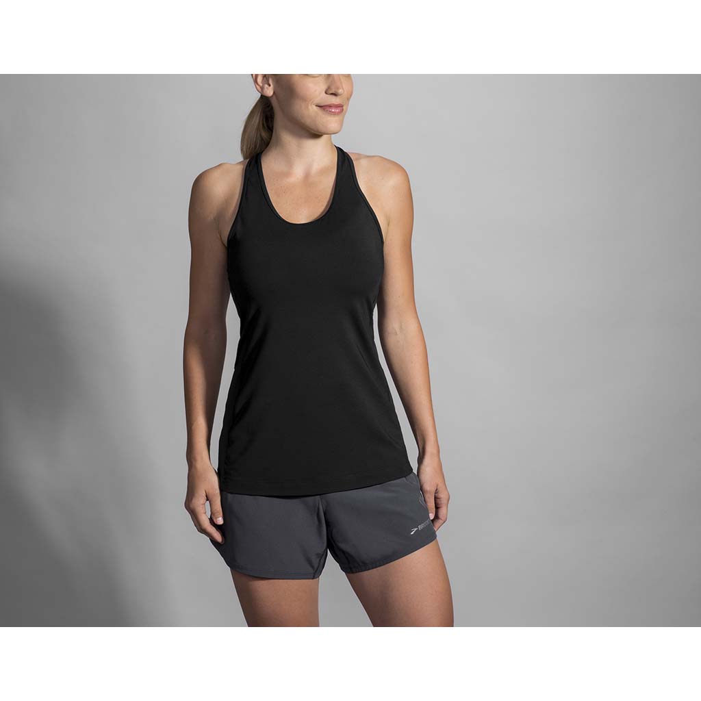 With its sleek, understated styling, this sweat-wicking Brooks running tank top dries quickly so your tough running workouts leave no trace other than on your fitness.