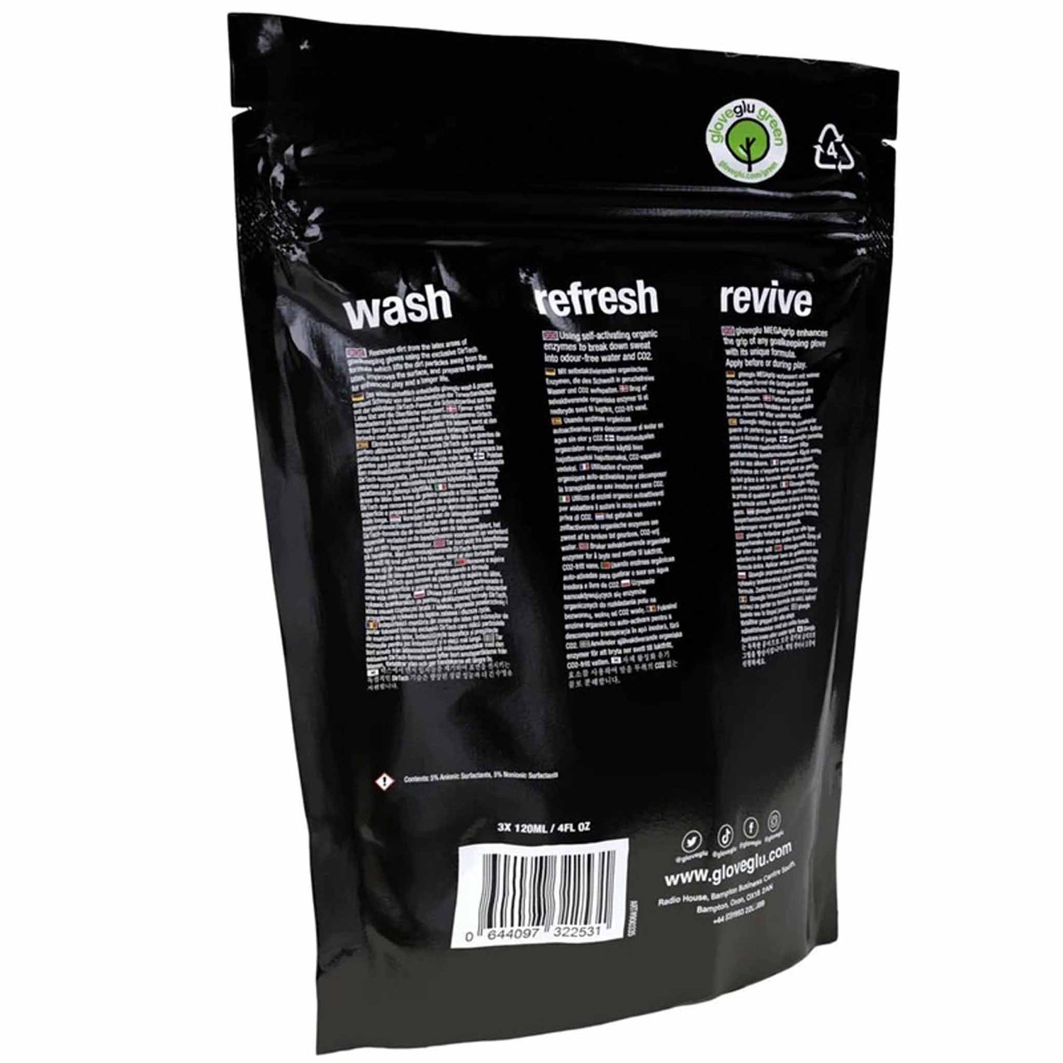 Our 3-Step System - Wash, Refresh, Revive - ensures your gloves perform better and last longer. The bundle includes Premium Glove Wash & Prepare (120ml) utilizing the exclusive DirTECH formula to remove dirt from the latex areas, enhancing glove performance and extending their lifespan. glovefresh (120ml) keeps your gloves smelling fresh and odour-free with a unique antibacterial formula that tackles odour-producing bacteria, unlike perfume-based sprays that only mask smells. Finally, gloveglu MEGAgrip (120ml) revives your gloves with a formula 25% stronger than our original, designed for older, more worn gloves to enhance their grip significantly.
