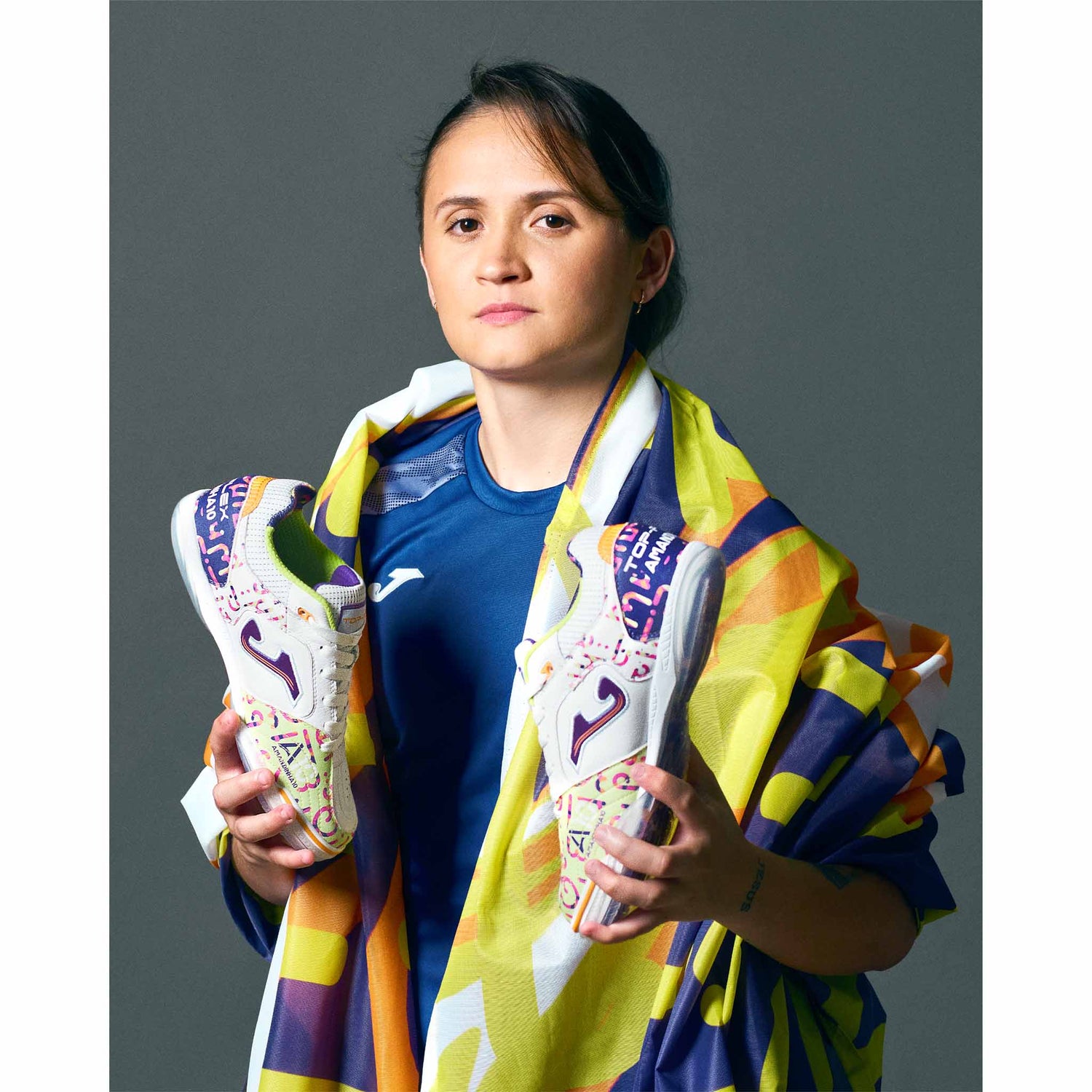The Joma Top Flex 2572 Amandinha Indoor Soccer Shoes are a legendary futsal classic trusted by professionals for over 30 years. Designed in collaboration with Amandinha, eight-time World Player of the Year, these shoes combine flexibility, comfort, and precision to dominate the indoor court. Their premium leather upper molds perfectly to your foot, enhancing touch and ball control while ensuring maximum comfort and breathability with VTS perforation technology. The PROTECTION toe reinforcement and lightweight phylon midsole deliver superior cushioning and responsiveness, while the DURABILITY rubber outsole guarantees excellent grip and traction with the ROTATION system for quick, fluid movements.
