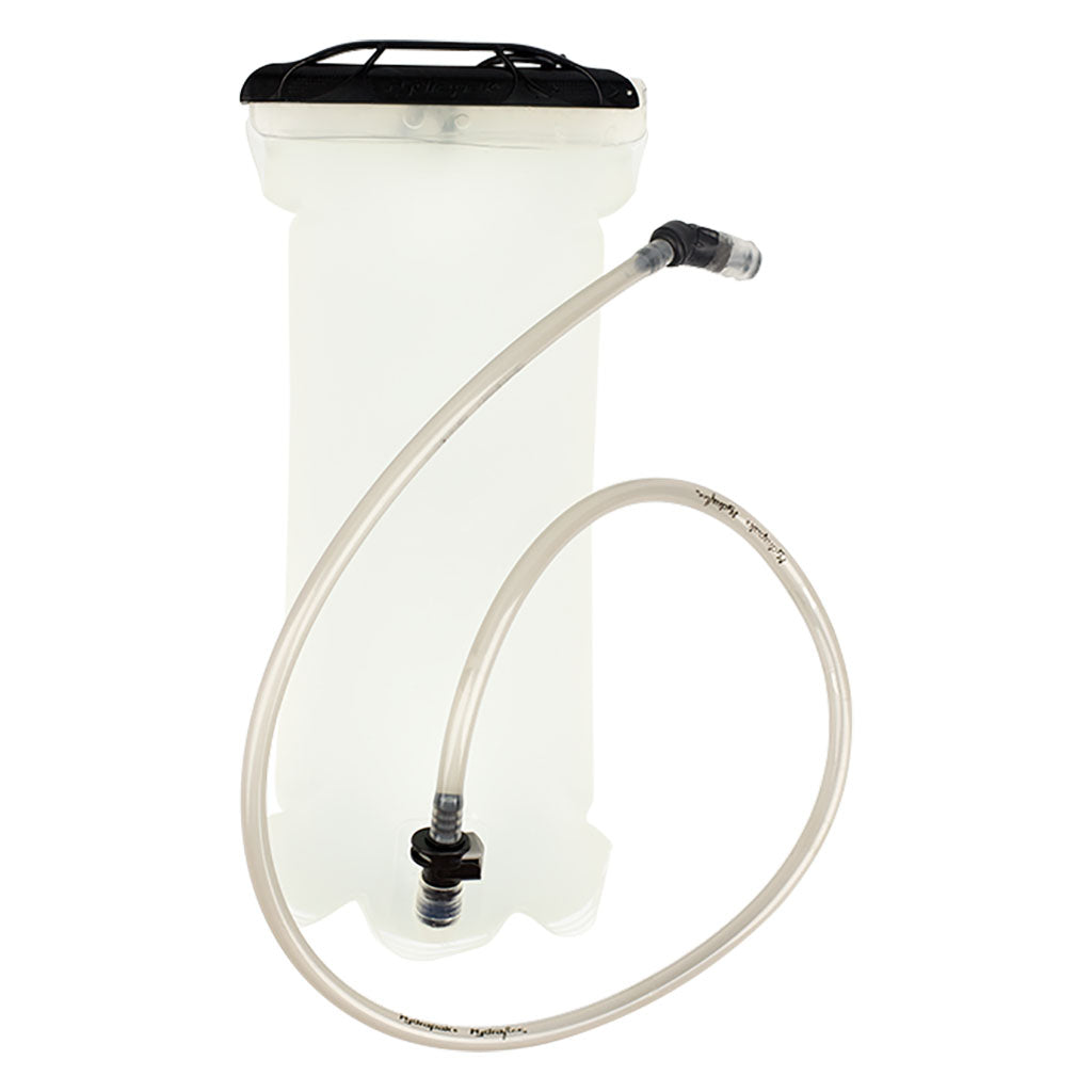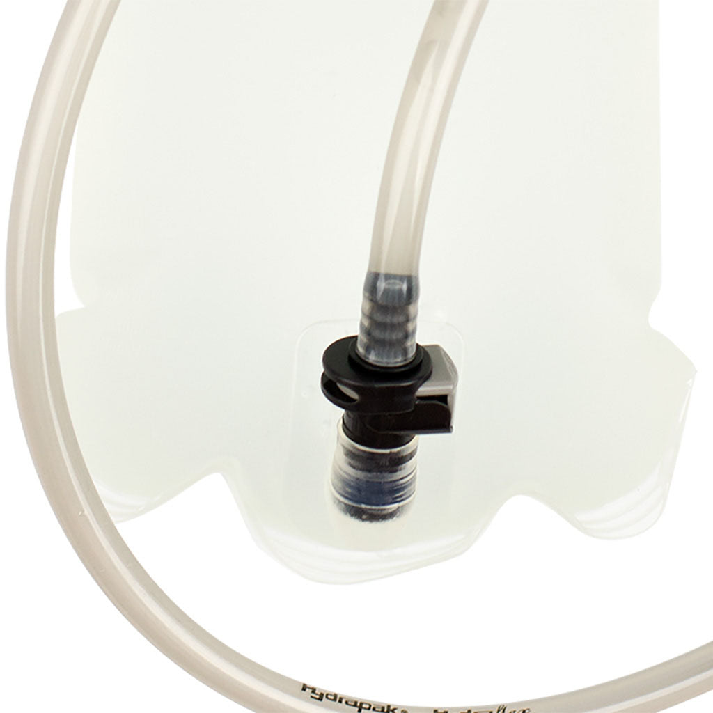Nathan BPA free hydration bladder with high flow bite valve. The bag has a large easy to fill opening and is now equipped with a quick release hose that allows for convenient cleaning and faster installation into your favorite Nathan Race jacket.