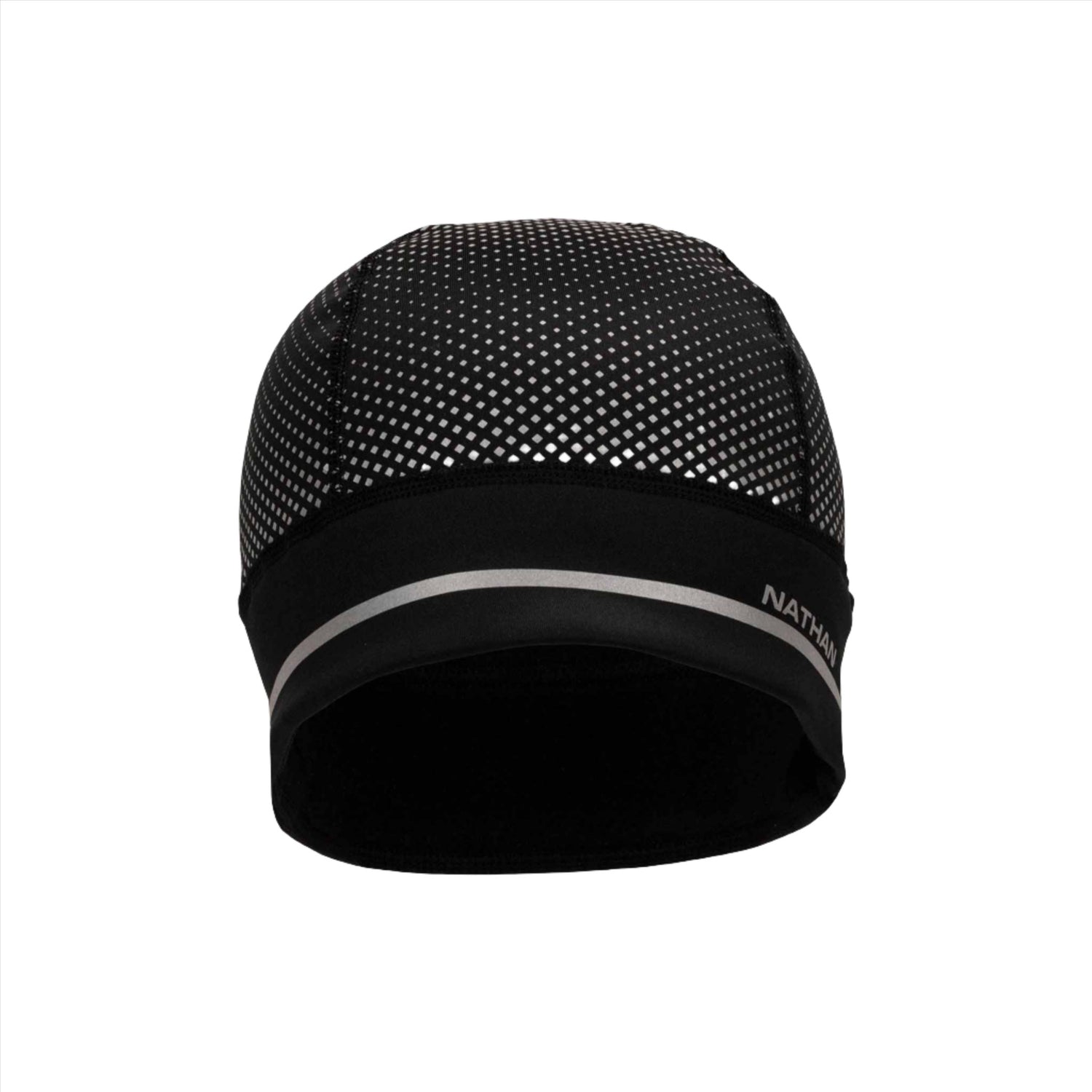 The Nathan HyperNight Reflective Pony Tail Running Beanie is designed to provide maximum warmth and comfort for cold weather runners. It features an opening in the back to pull through a ponytail, ensuring a perfect fit. Made from soft, stretchy tech knit fabric with a smooth face and a brushed interior to hold in warmth, this beanie wicks moisture away and dries quickly to keep you warm on colder days. Its expanded reflective geometric print graphic offers 360-degree visibility in low light conditions. Strategically placed reflective geo print graphics help you stay visible during early morning and evening runs and outdoor adventures. The stretchy fabric allows for a one size fits most design.