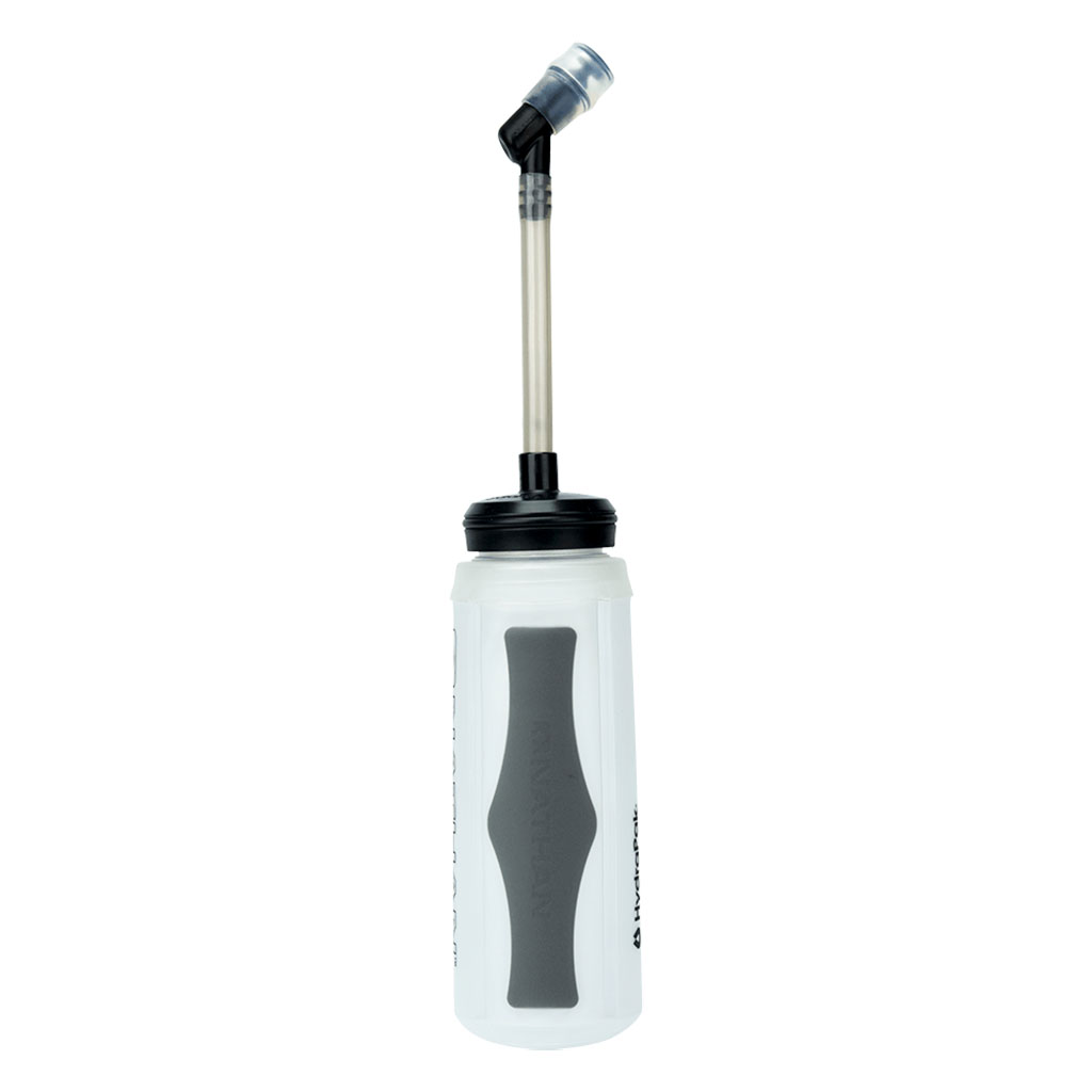 Two 12-ounce (355 mL) ExoShot soft bottles, with extended strap tubes for easy drinking of liquids without removing bottles from pockets.