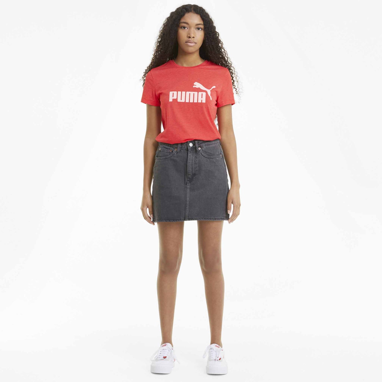 The Puma Essential Short Sleeve T-Shirt for active women, whether it's for training or relaxing, this lifestyle t-shirt with mottled fabric and classic Puma logo will fit you perfectly.