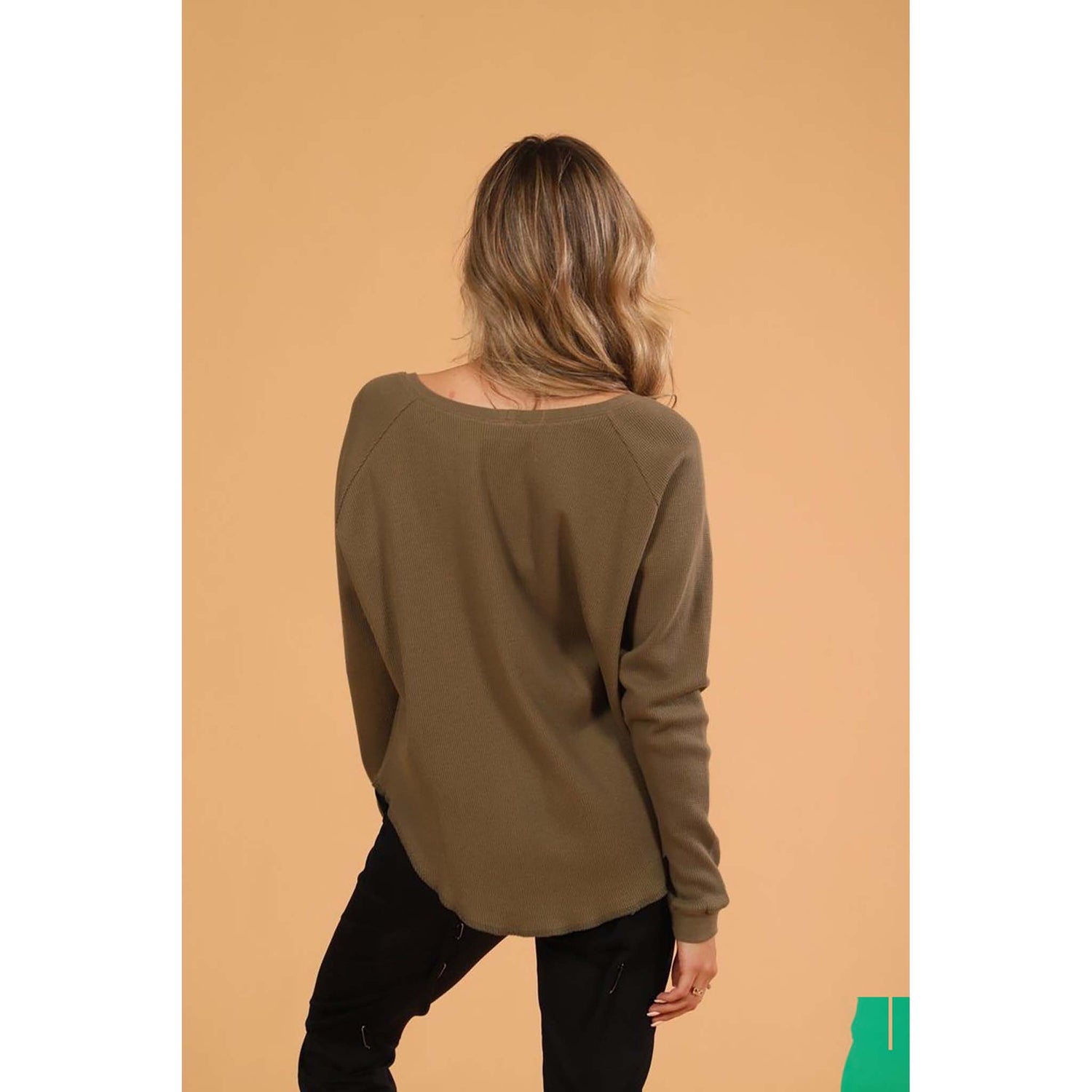 This oversized top is made larger than the usual Cozy long sleeve t-shirt. In order for it to keep its shape, it is necessary to put it in the dryer. It will shrink slightly, but it was designed with that in mind.