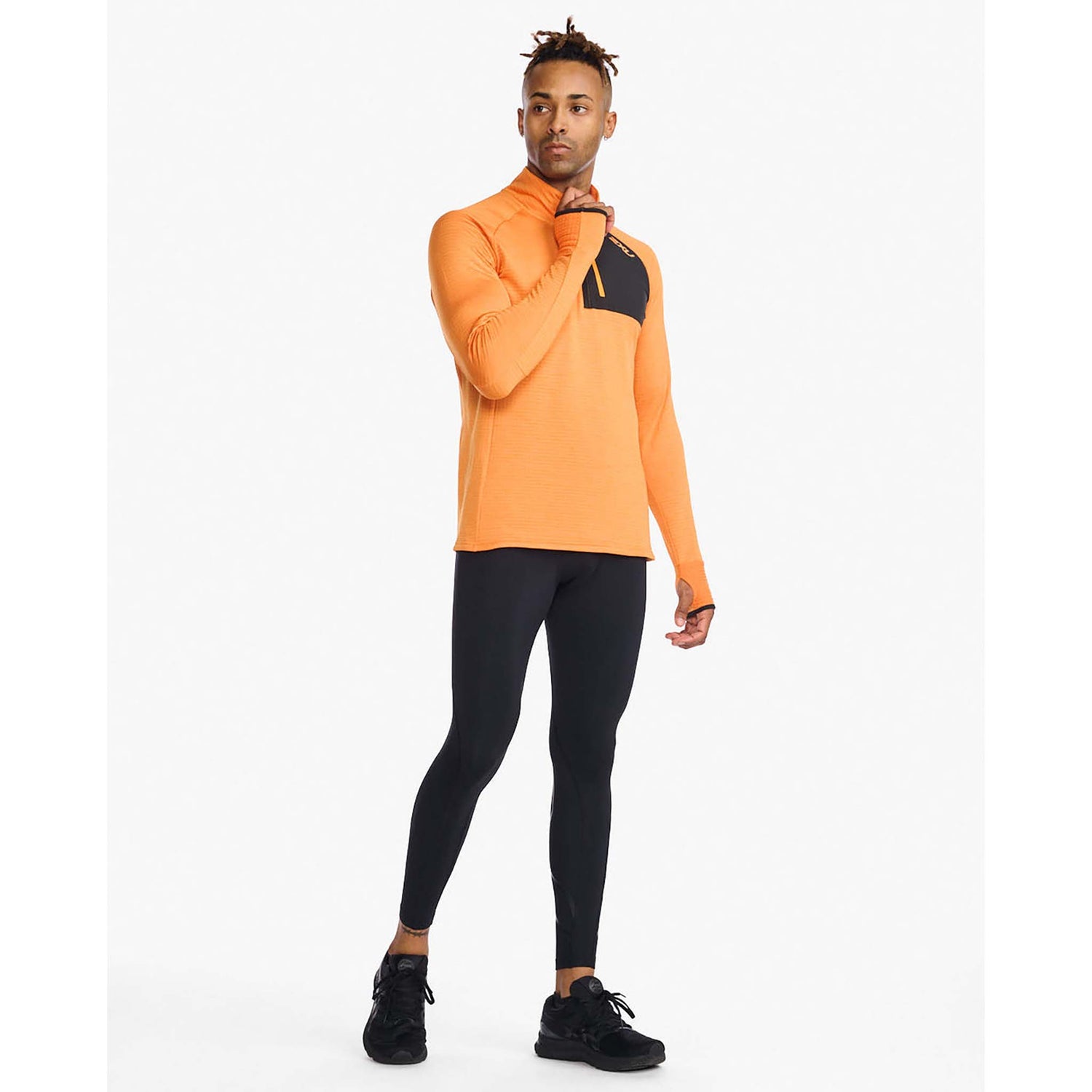 2XU chandail manches longues Ignition 1/4 Zip de course pour homme - Curcuma/Curcuma réfléchissant / XL est disponible sur commande et sera préparé dès sa réception en stock.