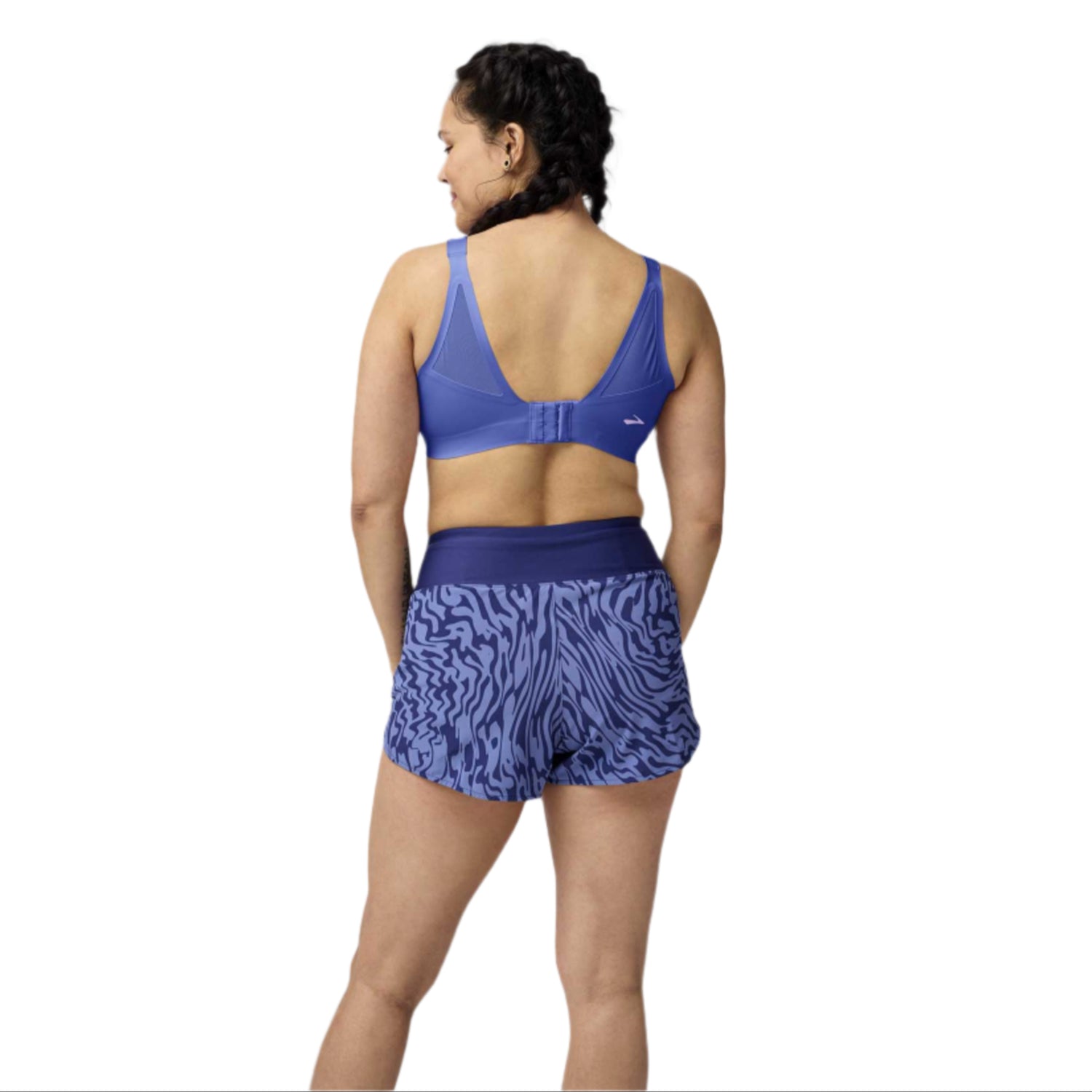 De nouvelles caractéristiques vous permettent de personnaliser son ajustement : des bretelles qui restent en place grâce aux crochets et boucles extérieures, ainsi que des crochets et des œillets à l’arrière pour un meilleur ajustement de la bande. Son tissu, léger et respirant, sèche très rapidement.
