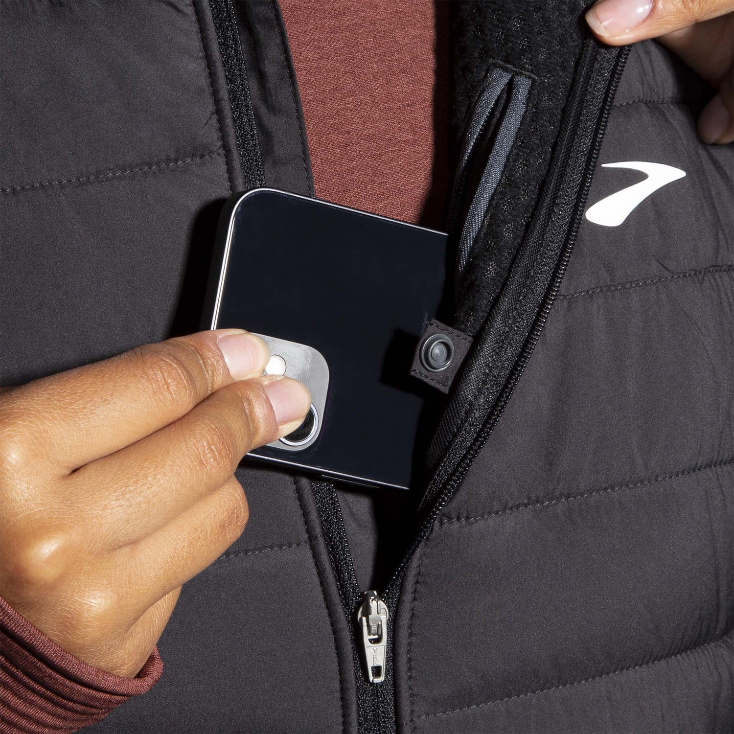 Poche zippée au niveau de la poitrine.