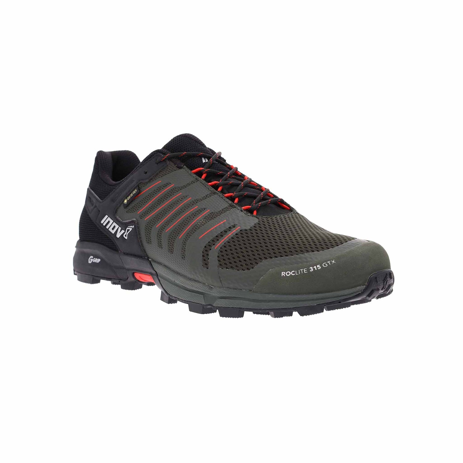 Inov-8 Roclite G 315 GTX souliers de course en sentier pour homme - Olive / Noir / Rouge / 8 est disponible sur commande et sera préparé dès sa réception en stock.
