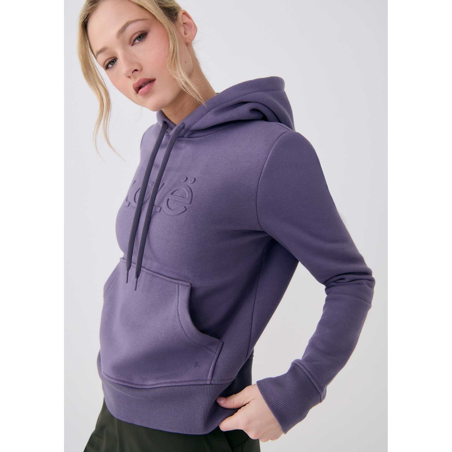 Logo embossé Lolë sur la poitrine.