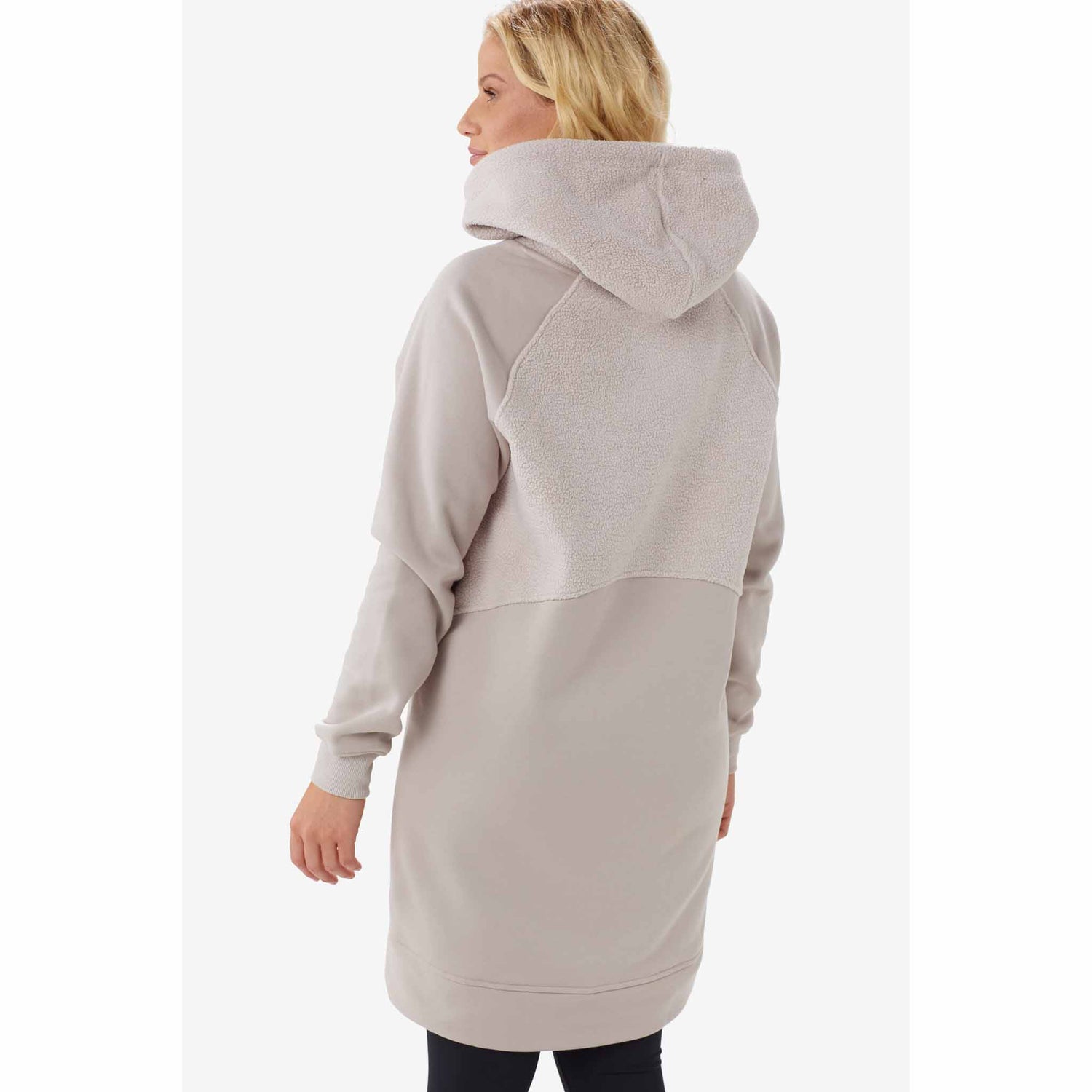 Cette robe tricotée à la coupe décontractée est fabriquée d’un mélange de coton et de sherpa (peluche effet mouton) pour un contraste réussi.