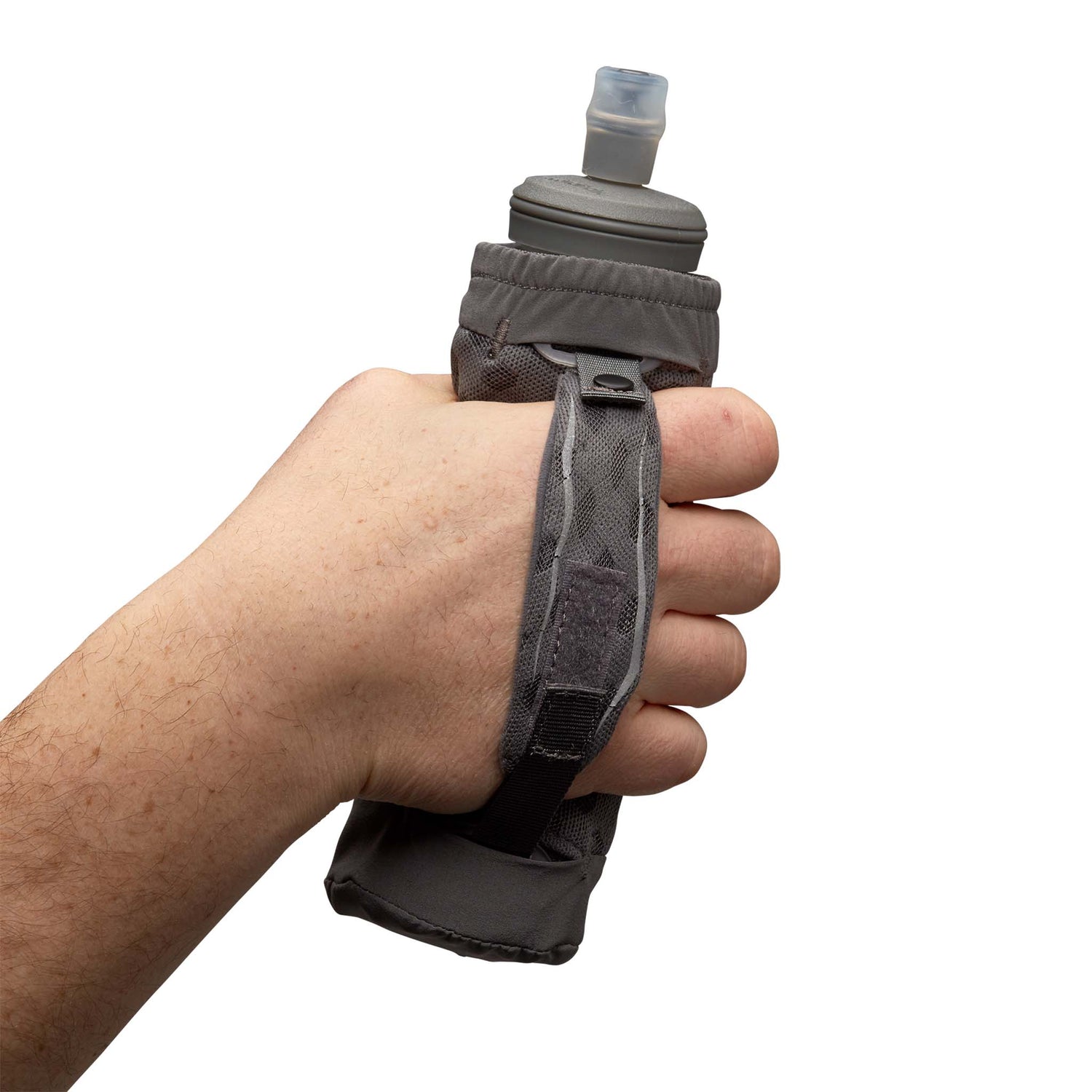 Le flacon souple de 414 ml (14 oz) sans PBA avec valve à mordre peut être facilement retiré de l’étui et utilisé dans les poches du gilet d’hydratation Nathan.