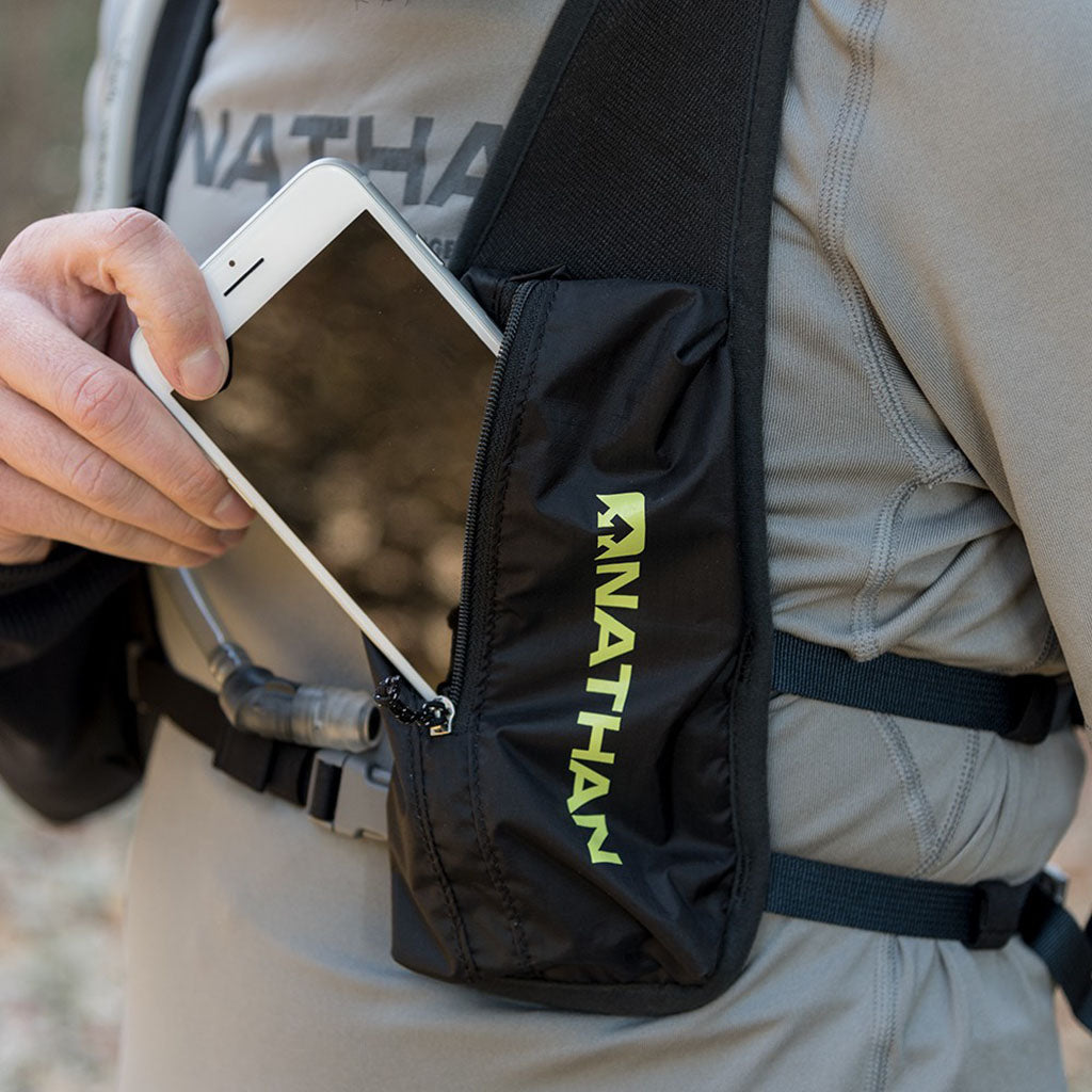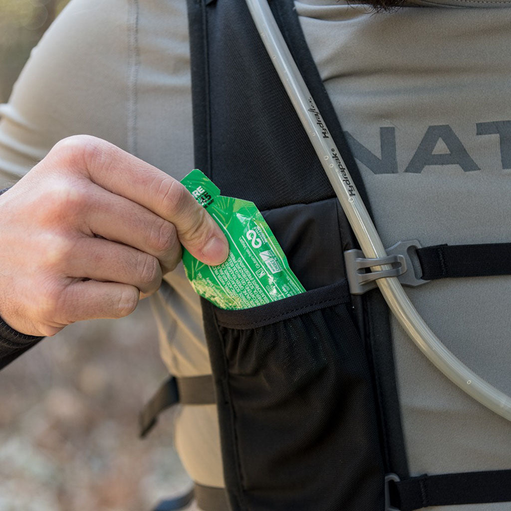 La veste d'hydratation de course à pied Nathan munie d'une à vessie d'hydratation de 1,5 L est une façon discrète et minimaliste de porter confortablement votre eau et autres éléments essentiels à votre sortie de course, en sentier ou sur la route.