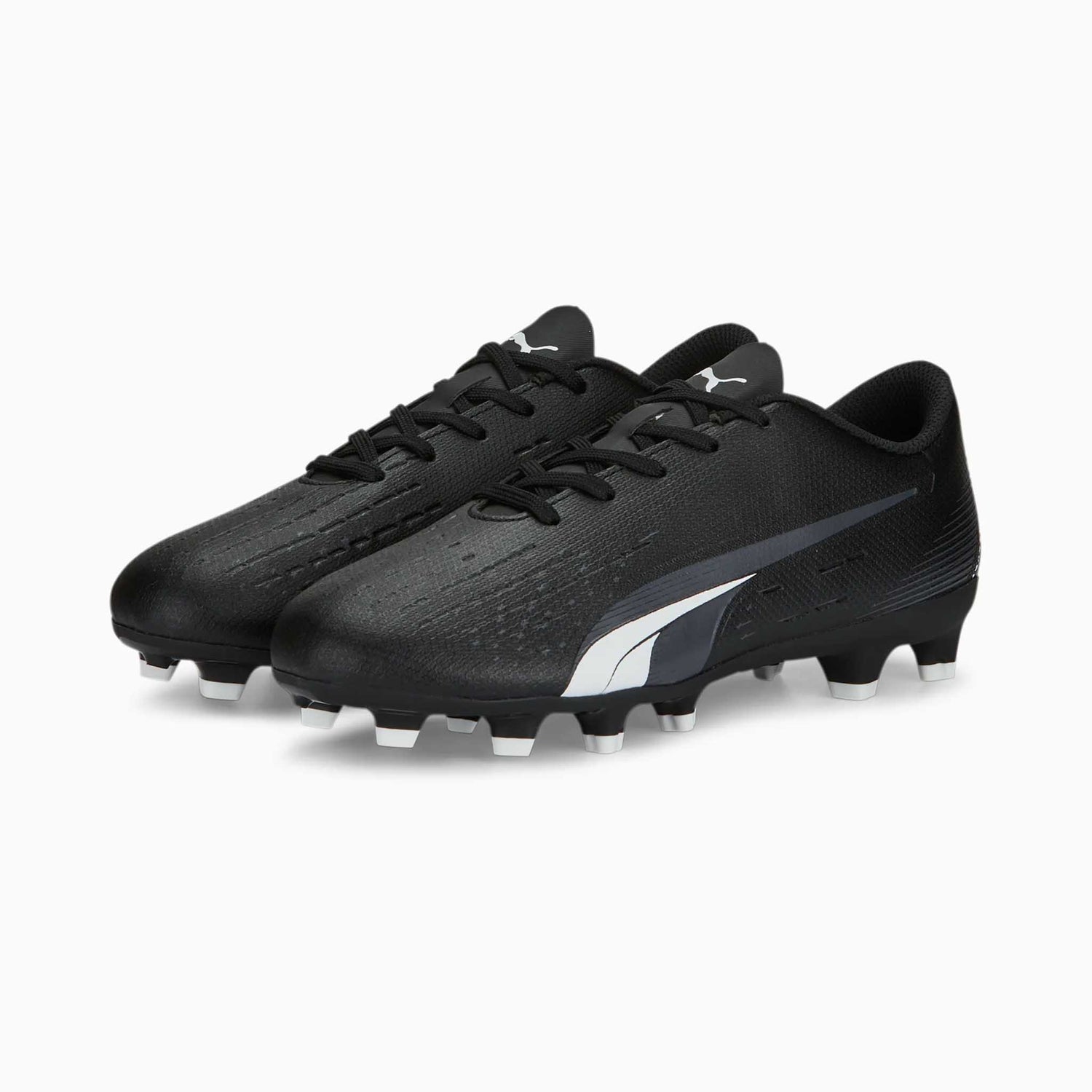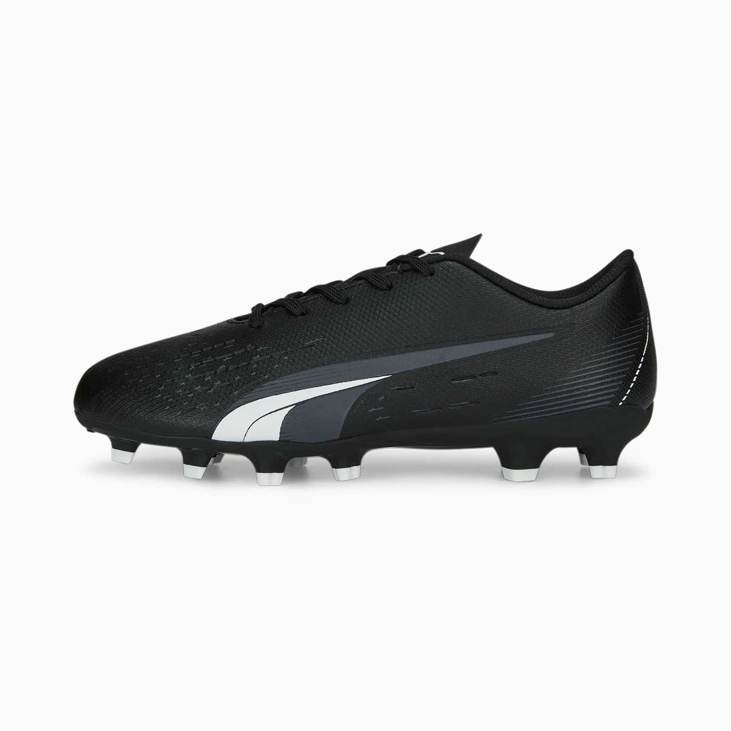 Puma Ultra Play FG/AG chaussures de soccer à crampons junior - Puma Black / Puma White / Y11 est disponible sur commande et sera préparé dès sa réception en stock.