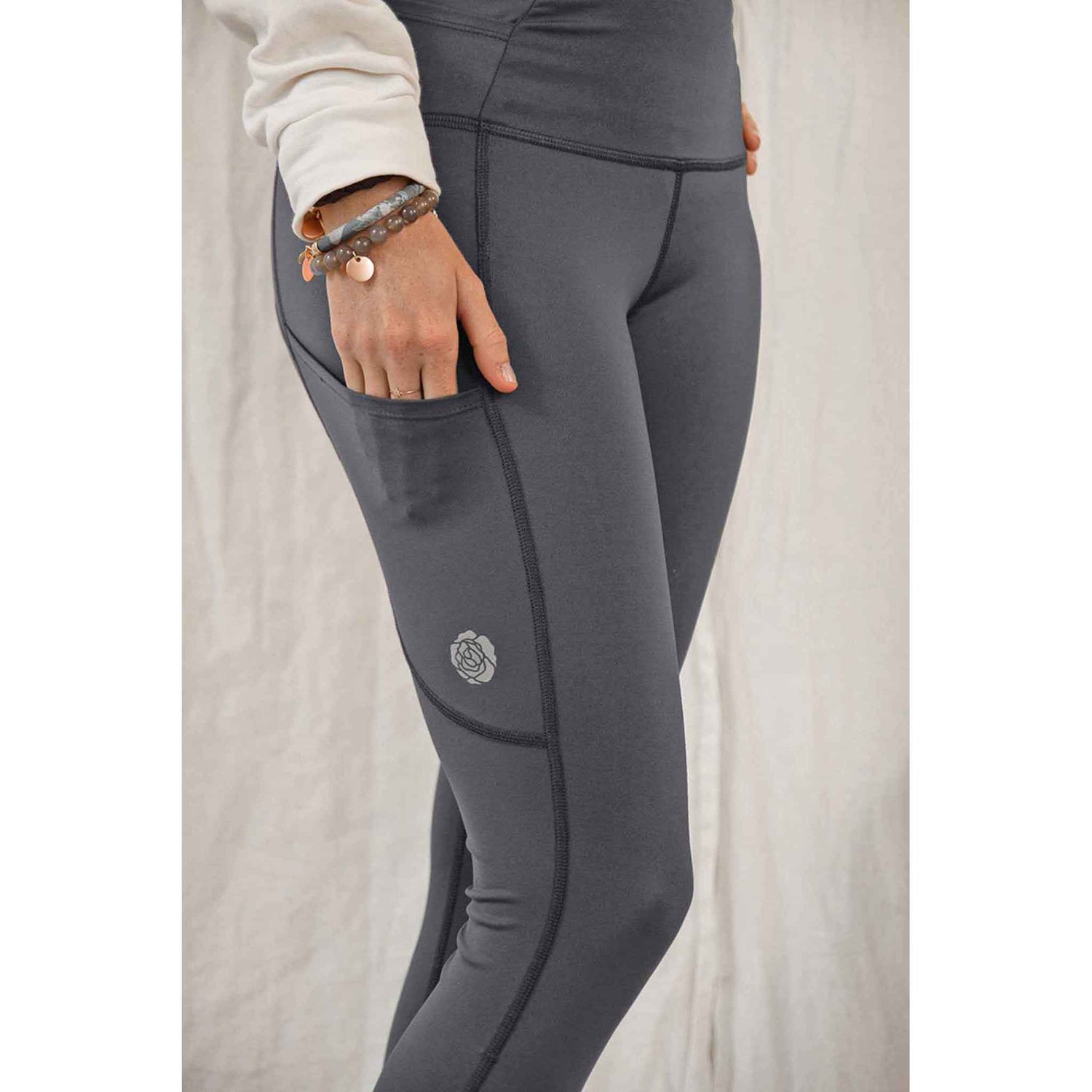 Les leggings de course a pied Rose Buddha est conçu à partir d'un tout nouveau tissu plus épais et compressif et toujours fabriqué avec amour au Québec! Ton legging comprend 5 poches, une bande et une rose réfléchissantes pour une meilleure visibilité, 3 points d'arrêt pour couper à la longueur souhaitée ainsi qu'une taille haute très confortable.