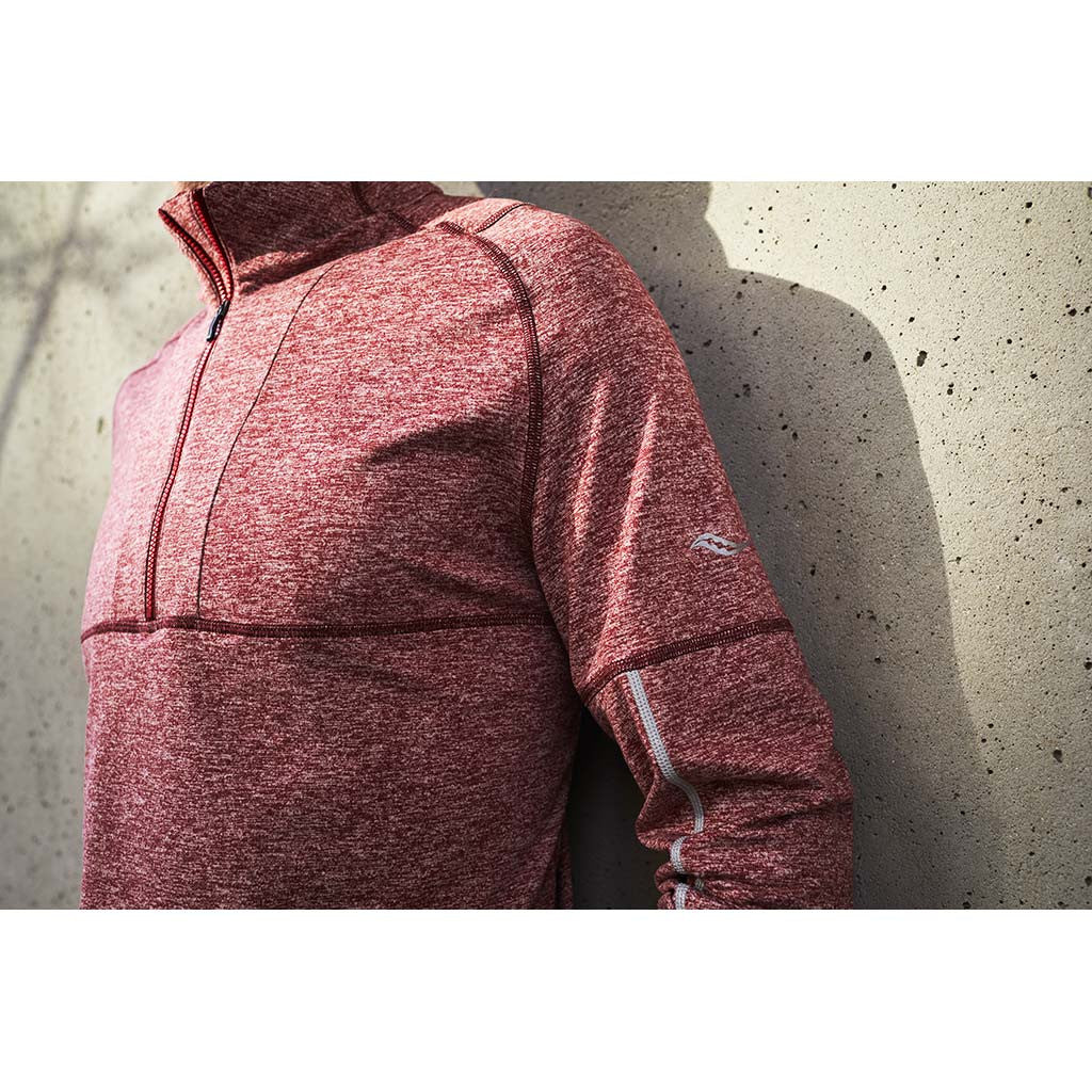 Le chandail de course à pied Run Strong de Saucony aux couleurs vives et fraîches de l'automne, mais qui vous garde au chaud. Le textile de ce chandail à manches longues de sport Saucony vous garde au chaud tout en évacuant l'humidité à l'extérieur. Léger et doux, c'est le compagnon parfait pour les matinées fraîches, et une transition en couche de base pour les journées froides.